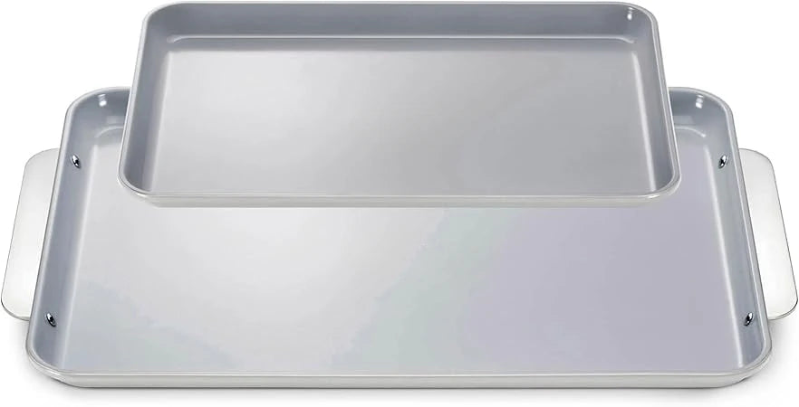 THE PERFECT DUO: Baking essentials for any kitchen, the Baking Pans Duo-an oven-ready pairing of our 18x13" Large & 15x10" Medium Baking Pans. Featuring a naturally non-toxic ceramic-coating, these sheets make healthy baking (and clean up) easier than ever.